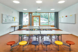 Neuerrichtung des Kindergartens auf der bestehenden Parzelle mit fünf Gruppen und Hortbetreuung. Abbruch des Bestandsgebäudes nach Umzug in den Neubau und Neuerstellung der umliegenden Freiflächen.