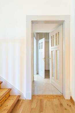 Umbau und Renovierung zweier Wohnungen im 3. Obergeschoss der denkmalgeschützten Jugendstil-Villa unter Berücksichtigung des bauzeitlichen Gebäudebestands.